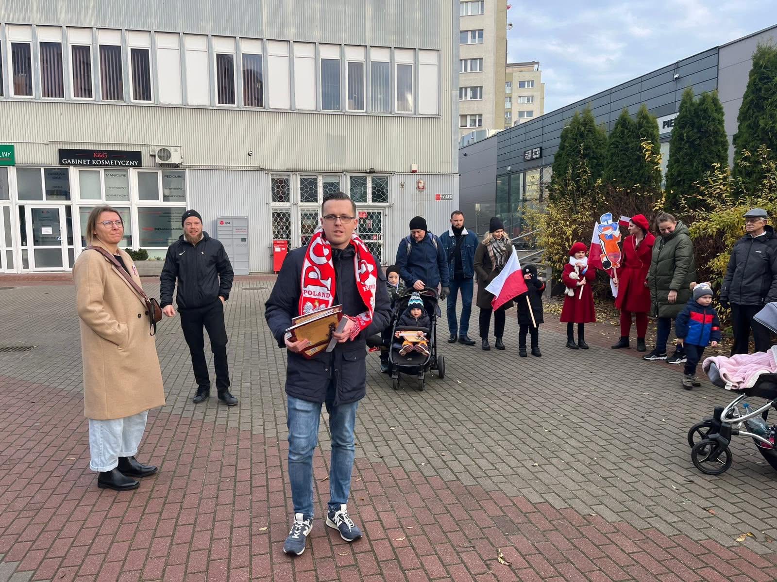 ➡️ Punktualnie o 8:40 zebraliśmy się na placu koło poczty skąd po wykonaniu pamiątkowego zdjęcia 📸 przeszliśmy ulicą Paderewskiego i schodami przy ul. Starodworskiej by dołączyć do Siedleckiej Parady Niepodległości organizowanej przez Rada Siedlce.