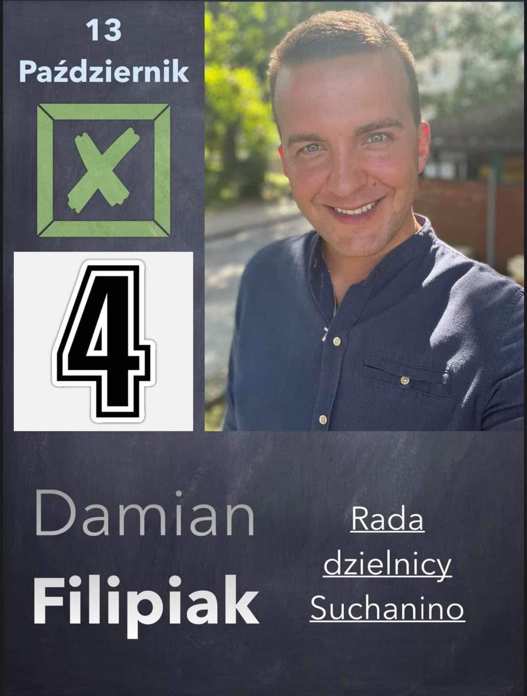 Kandyduje do Rady Dzielnicy, a więc trochę o mnie: – Nazywam się Damian Filipiak studiuje i pracuje, hobbystycznie gram w tenisa 🎾i w siatkówkę 🏐- jestem otwarty na nowe wyzwania 💪🏻 – angażuje się w powierzone zadania ✅- zamierzam aktywnie działać dla dobra Naszej dzielnicy 🤔- zachęcam do głosowania Wszystkich im Nas więcej tym lepiej 💵 13 Październik 🗳️