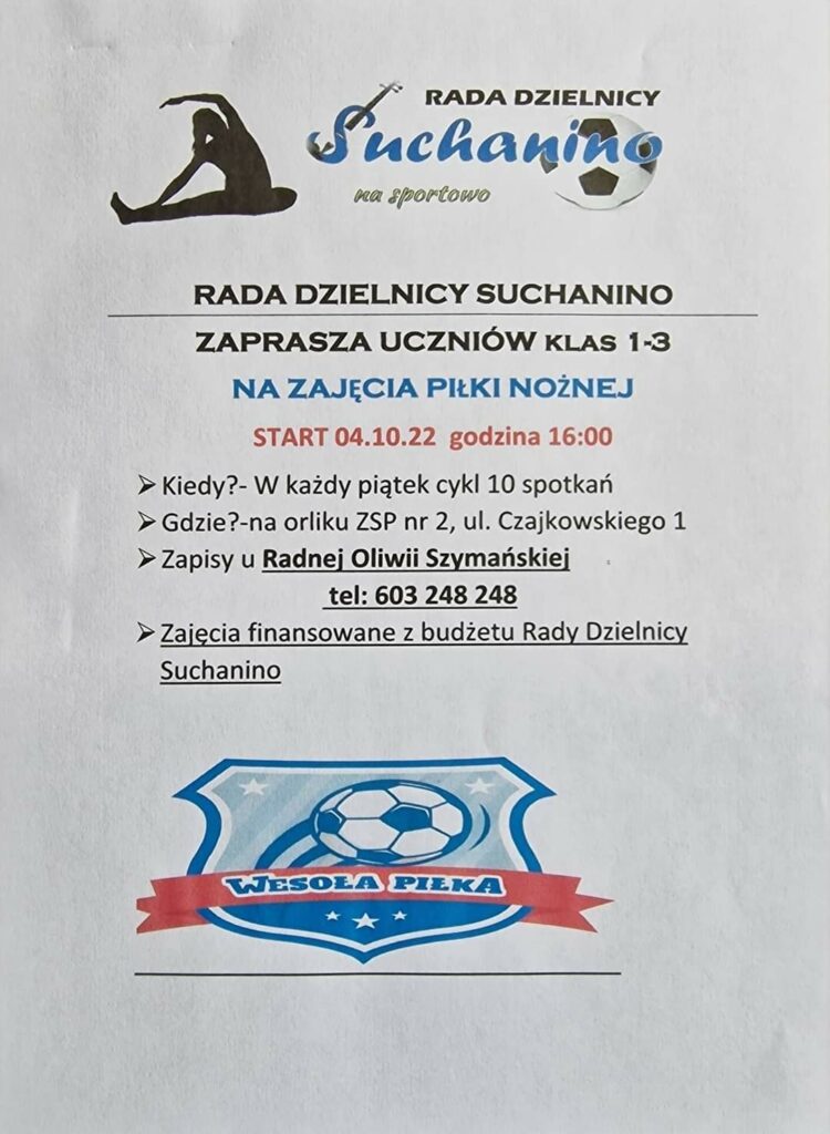 Zajęcia z piłki nożnej ⚽ dla uczniów klas I-III. ➡️ ZSP 2 START 04.10.2022 godzina 16:00 10 kolejnych wtorków