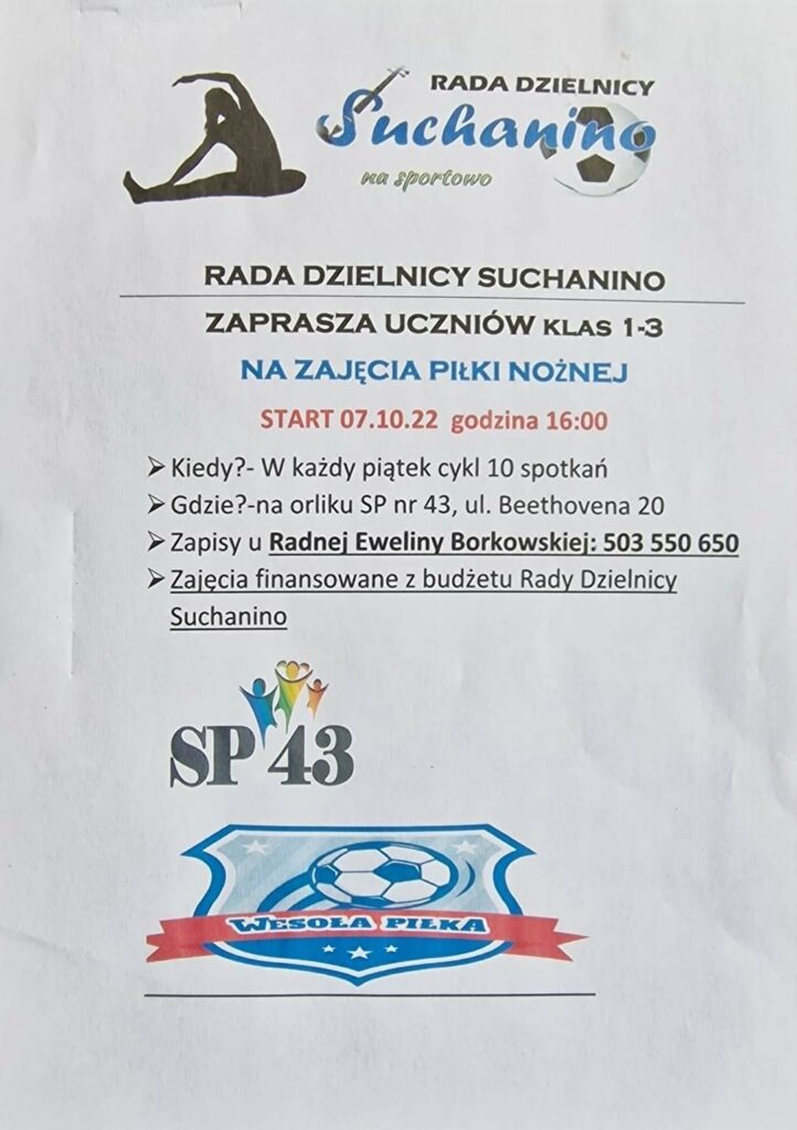 ➡️ SP 43 START 07.10.2022 godzina 16:00 10 kolejnych piątków