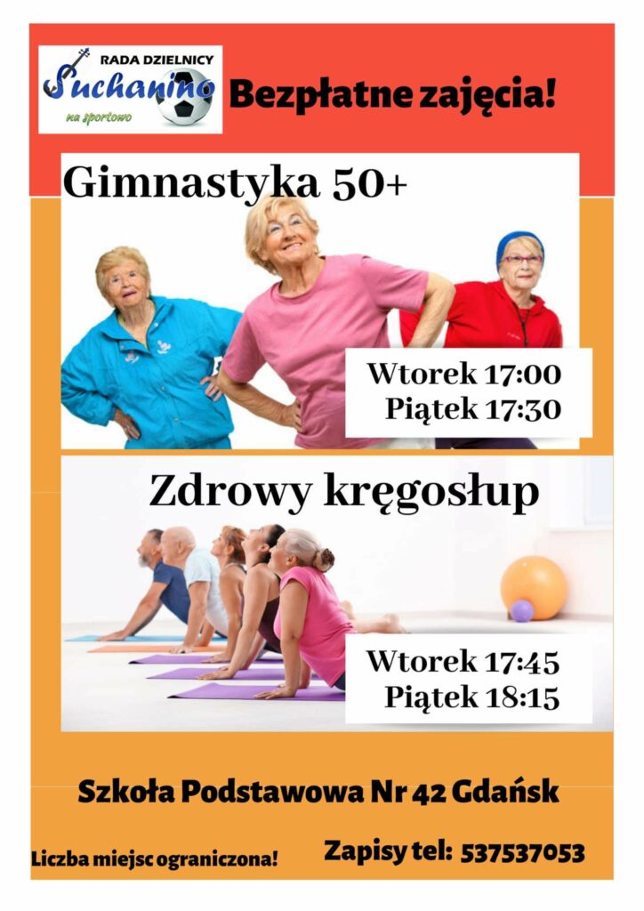 Zapraszamy na bezpłatne zajęcia „Gimnastyka 50+” i „Zdrowy kręgosłup”, które odbywają się w Szkole Podstawowej nr 42. Liczba miejsc ograniczona.