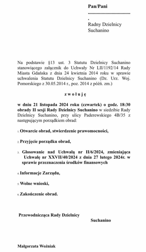 Rada Dzielnicy Suchanino– koordynator Małgorzata Woźniak
