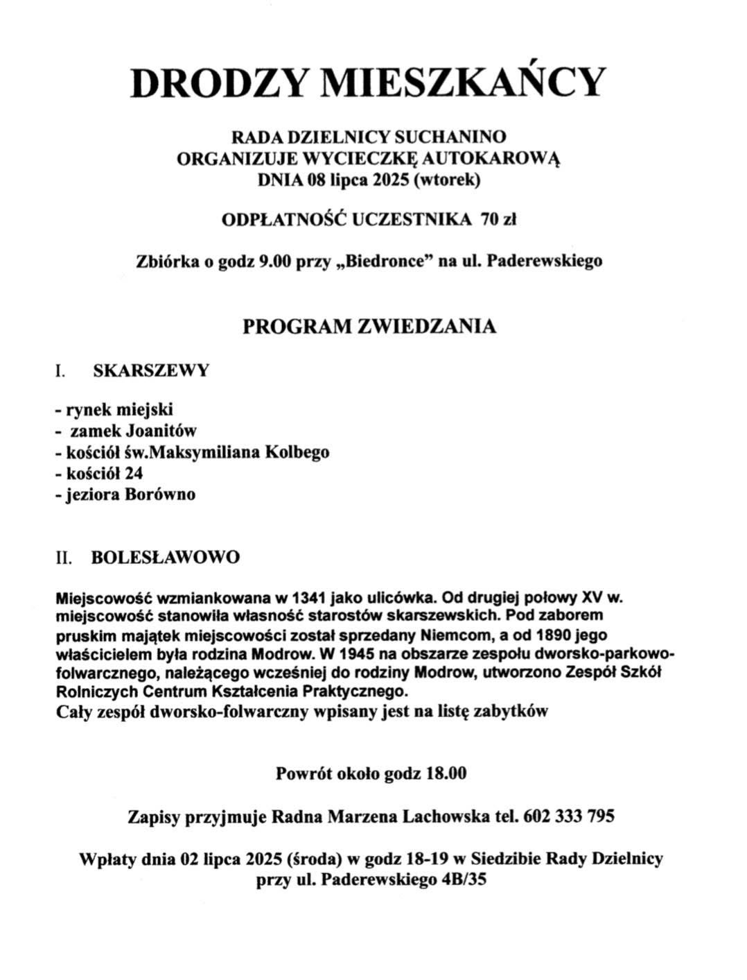 Zapisy u radnej Marzeny Lachowskiej tel. 602~333~795