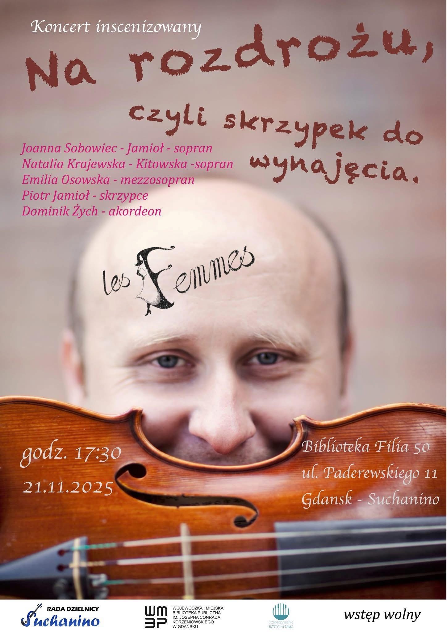 W najbliższy piątek zapraszamy na koncert inscenizowany pt. „NA ROZDROŻU, czyli Skrzypek do wynajęcia”. Wystąpi zespół Les Femmes 🎶.