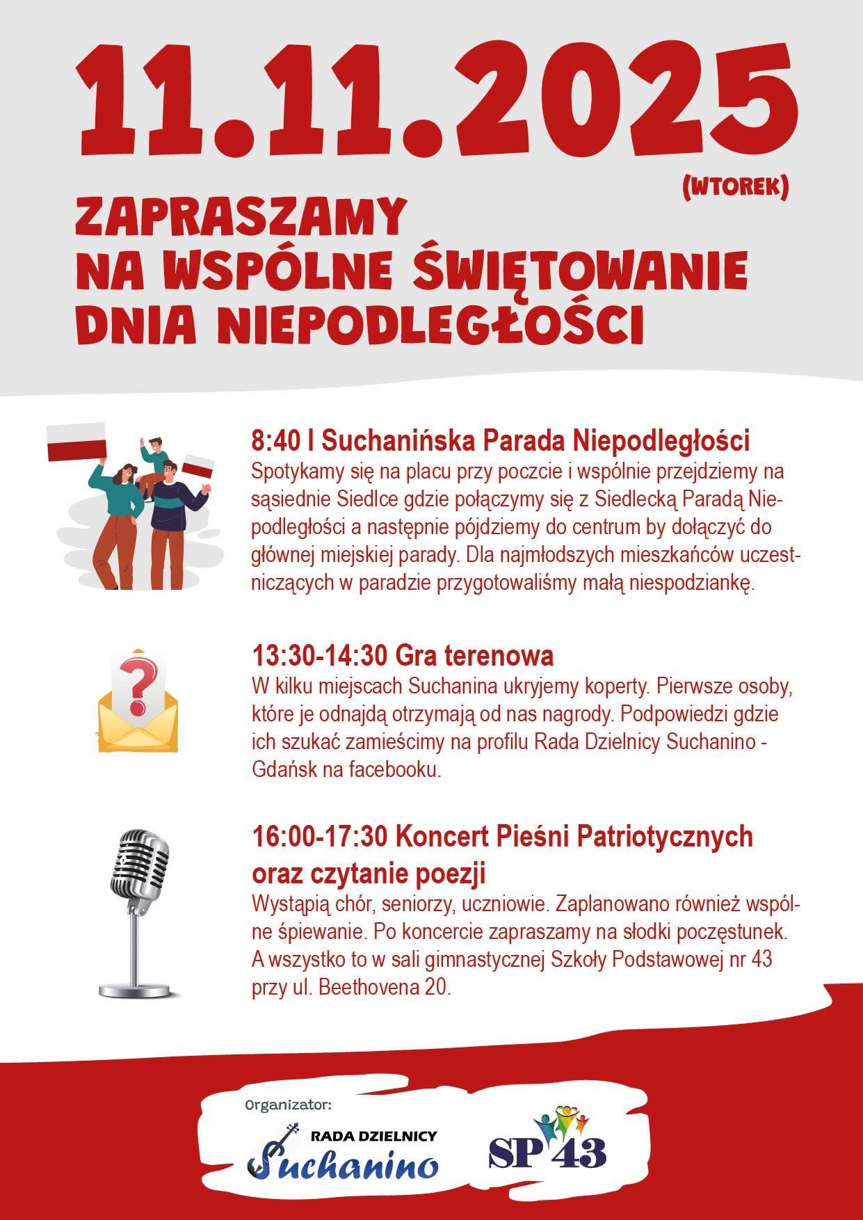 Zapraszamy na wspólne świętowanie Dnia Niepodległości 🇵🇱 11.11.2025r. (wtorek)
